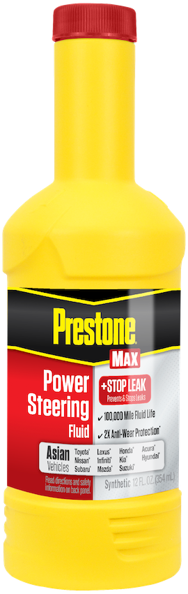 Prestone® MAX Asian Vehicles Power Steering Fluid (PSF) plus Stop Leak maximizes and increases system life and has the power to stop leaks. This synthetic fluid is designed with 2X Anti-wear System Protection, which means more protection against pump failure, squeals and clogs.